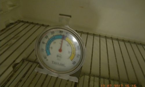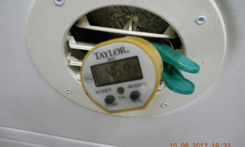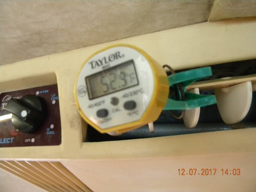 Locate and identify the refrigerator. Operate on all heat sources. Measure and record inside temperatures. Confirm correct ventilation. Check and confirm recall has been completed if applicable.