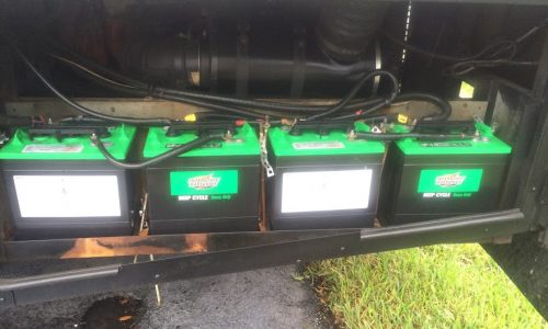 Evaluate condition, location and type of battery bank. Verify charging. Measure no charging and charging voltages. Inspect cables and housing.