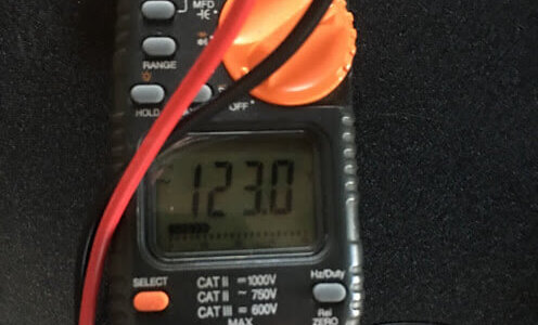 Inspect and evaluate power cord, breaker panel, wiring type, size and security, verify 120 VAC to 12 VDC Converter