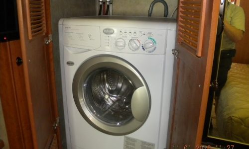 Locate and identify washer/dryers. Verify operation if shore water/sewer hooks ups are available. Visually inspect hoses for leaks and condition. Evaluate and rate the dryer exhaust vent.